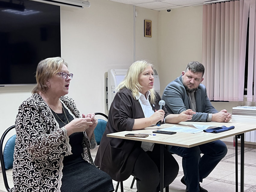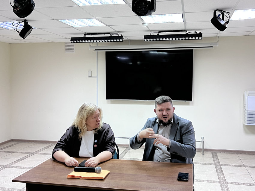 После обеда состоялась встреча переводчиков и председателей МО ВОГ с представителями СФР. К обсуждению присоединились заместитель управляющего отделением СФР по Смоленской области Филимонова Милена Евгеньевна и консультанты по ТСР Пушкарева Светлана Владимировна и санаторно-курортному лечению Быбина Юлия Анатольевна, которые ответили на вопросы, касающиеся ТСР, услуг по переводу и санаторно-курортного лечения.