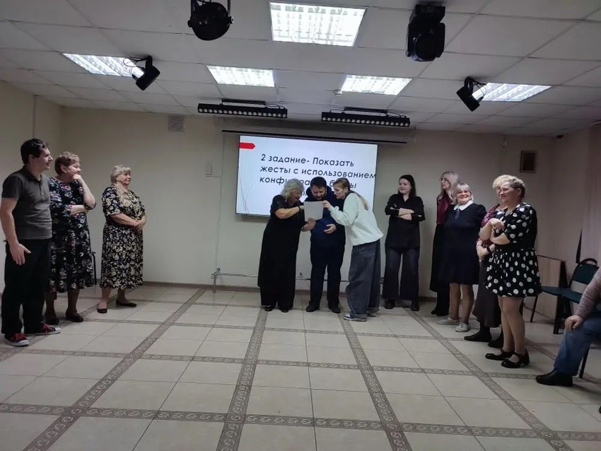 После концерта состоялась Игра «Пойми меня», в которой встретились глухие участники и слышащие, которые недавно закончили наш курс РЖЯ. Знания ожили в пространстве РЖЯ, барьеры были разрушены, а на их месте родилось живое, радостное общение. И мы видели это в улыбках, в жестах, в глазах каждого.