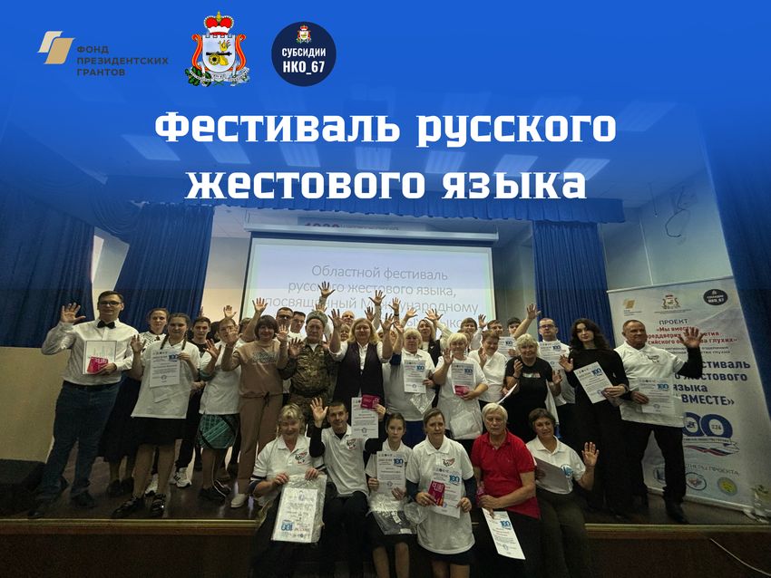 Фестиваль РЖЯ был организован в рамках реализации социальной программы, финансируемой за счёт субсидии, предоставленной социально ориентированной некоммерческой организации в соответствии с приказом Министерства Смоленской области по внутренней политике от 10.02.2025 № 26-ОД-1. Средства направлены на поддержку проектов, способствующих развитию гражданского общества в Смоленской области. Также фестиваль РЖЯ прошёл при поддержке ПАО «Сбербанк» , Министерства социального развития Смоленской области за счёт средств областного бюджета государственной программы «Социальная поддержка граждан, проживающих на территории Смоленской области» от 28.11.2013 г. №974 и Администрации города Смоленска за счёт субсидии некоммерческим организациям, утвержденным постановлением Администрации города Смоленска от 02.02.2018 г № 284 - адм.