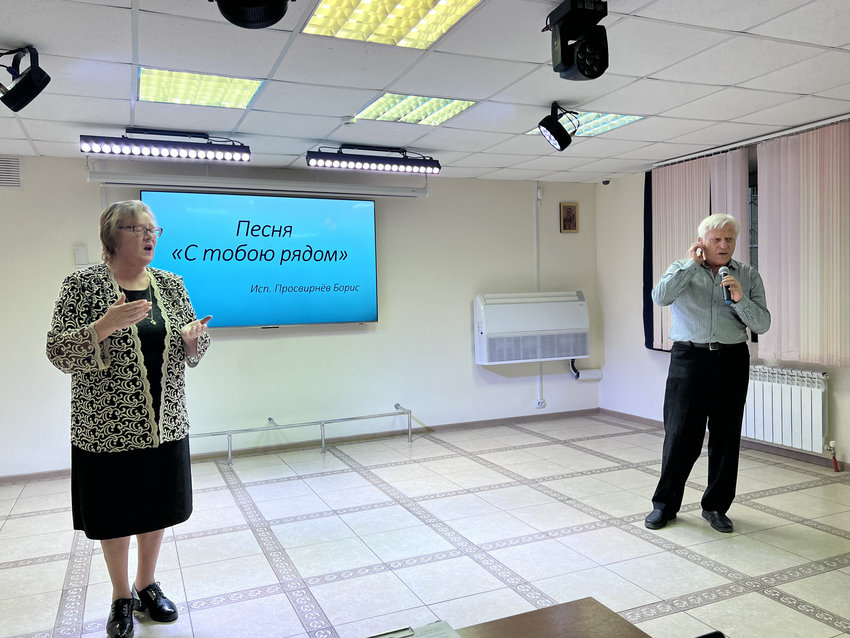 Открыл праздник Борис Просвирнев, который прочитал стихотворение собственного сочинения «Три спутника» и спел песню «С тобою рядом». .Переводила на жестовый язык верная спутница и помощник Елена Просвирнева.